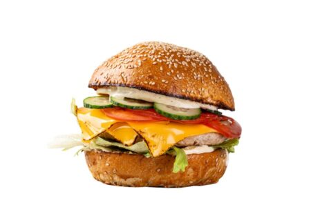 яловича котлета, бекон, тостовий сир, соус класичний, айсберг, огірок маринований, маринована цибуля