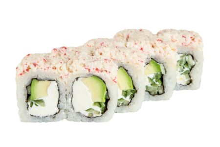 Норі, рис, лосось теріякі, огірок, крем-сир, кунжут білий, авокадо