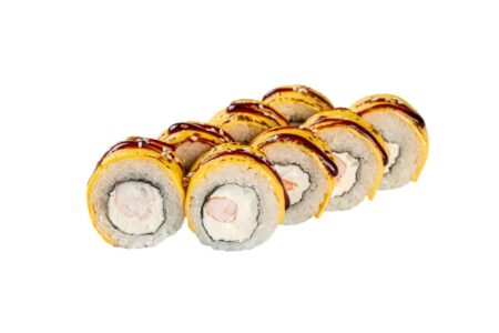 норі, рис, крем-сир, лосось, тунець, авокадо, заміс сніжного краба, помаранчева ікра масаго, креветка, японський майонез, кумкват, соус унагі
