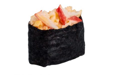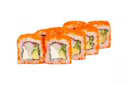 • норі, рис, сніжний краб, огірок, авокадо, крем сир, ікра масаго, спайсі соус
