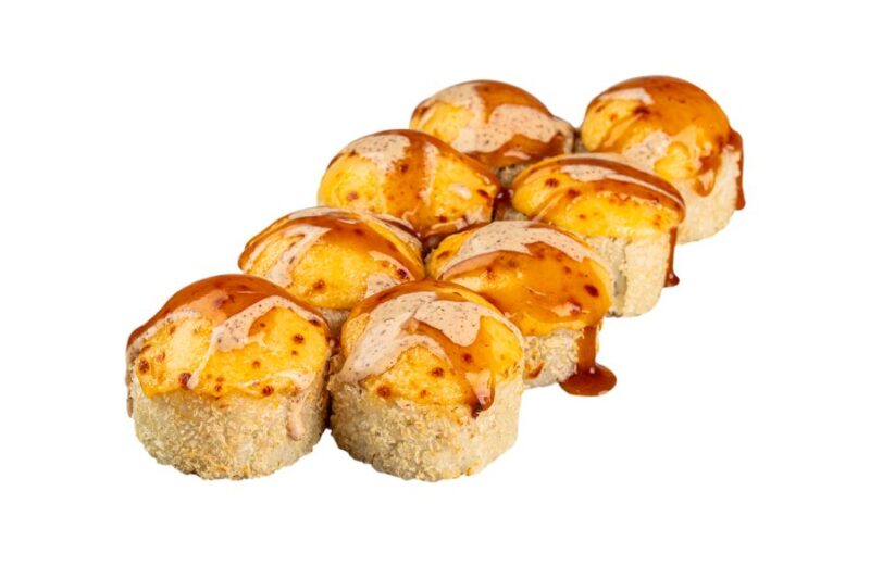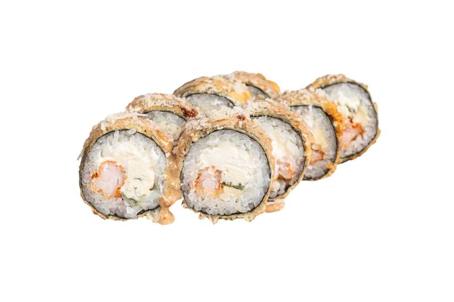 норі, рис, крем-сир, креветка в клярі, тостовий сир, соус унагі, кунжут