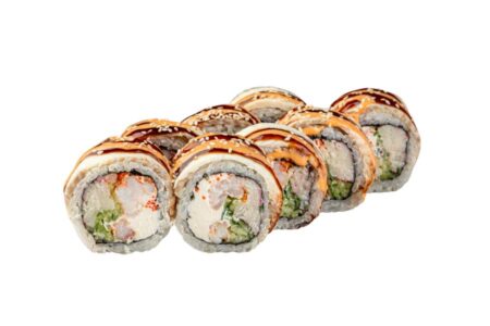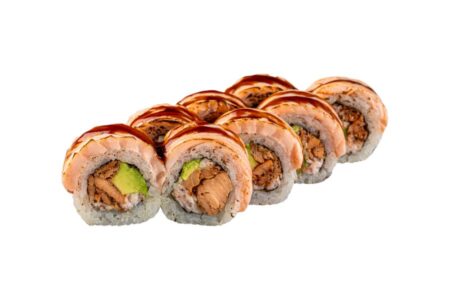 норі, рис, авокадо, лосось, сніжний краб, японський майонез, лосось теріякі, соус унагі